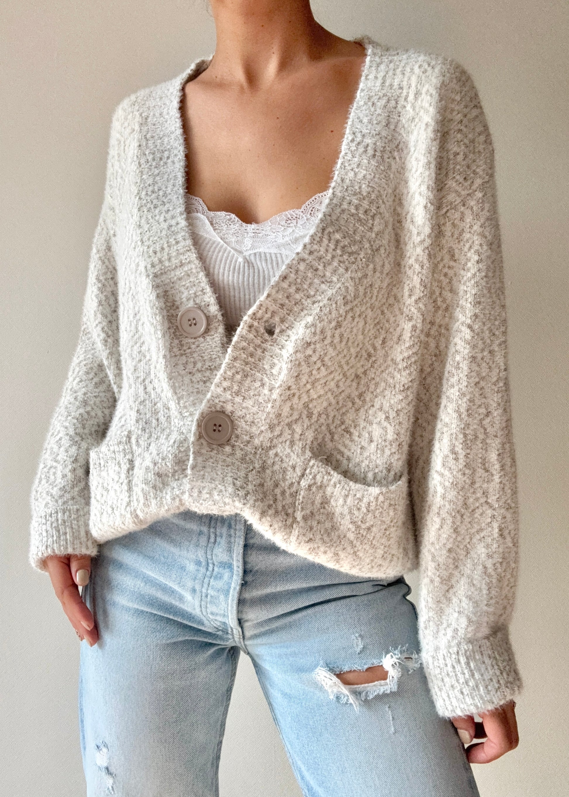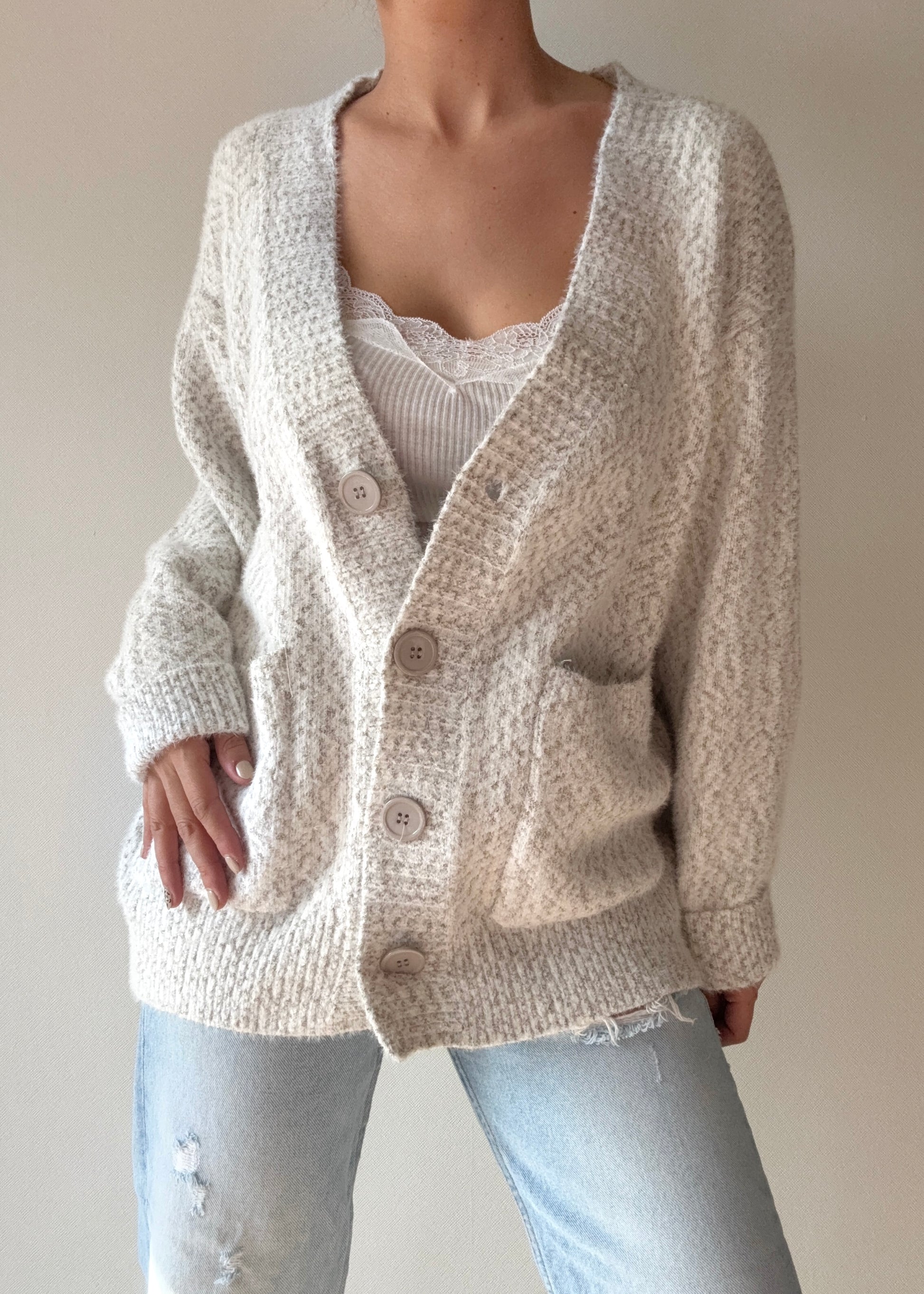 Precioso cardigan jaspeado en 3 tonos disponibles.